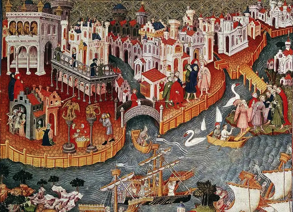 L’enluminure ci-dessus est un extrait du manuscrit magnifiquement illustré du « Livre des merveilles du monde » (Bibliothèque nationale française – domaine public).