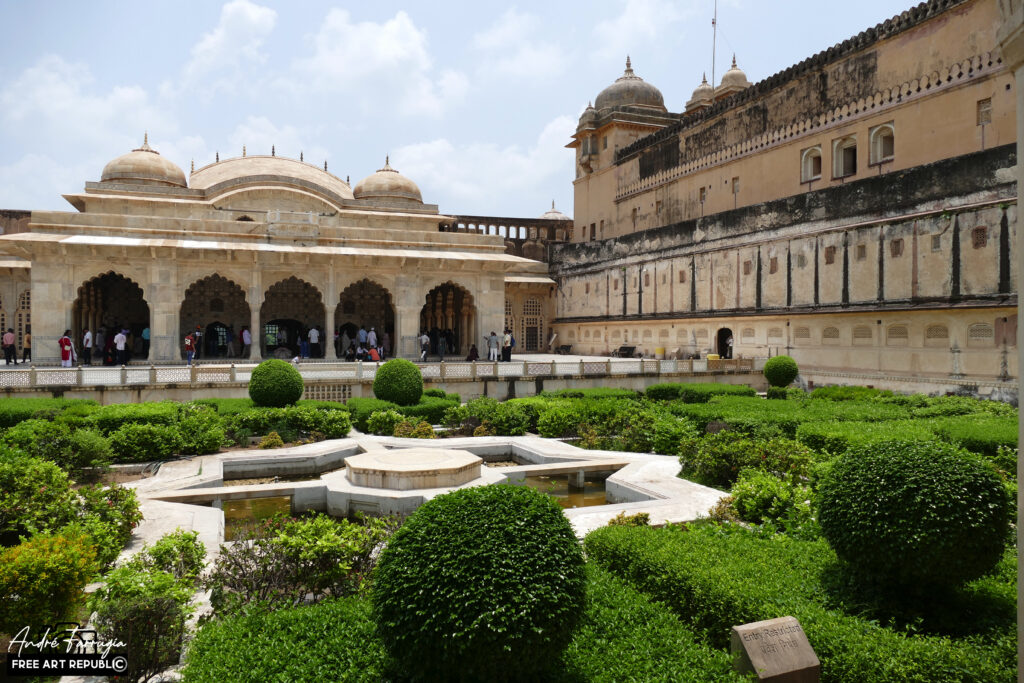 - Jardins et fontaines : Le palais Amber était entouré de magnifiques jardins paysagers avec des parterres de fleurs, des fontaines en marbre et des canaux d’eau. Ces jardins étaient des lieux de détente et de promenade pour les membres de la famille royale et leurs invités.